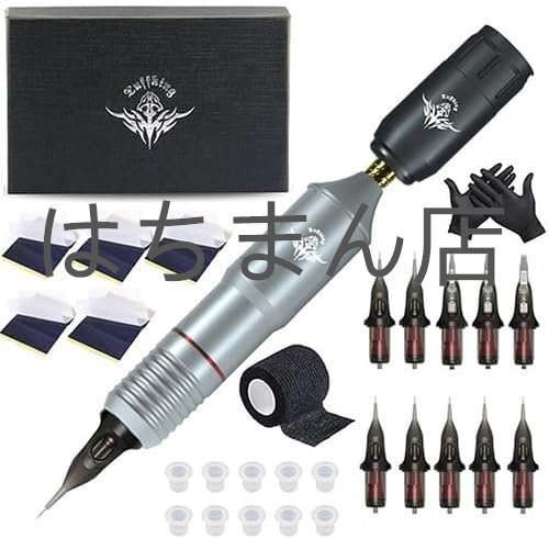 - プロのタトゥーマシン ワイヤレスタトゥーマシン セット カートリッジ針10本付き電動タトゥーペン初心者タトゥーマシン (Color : シルバー)