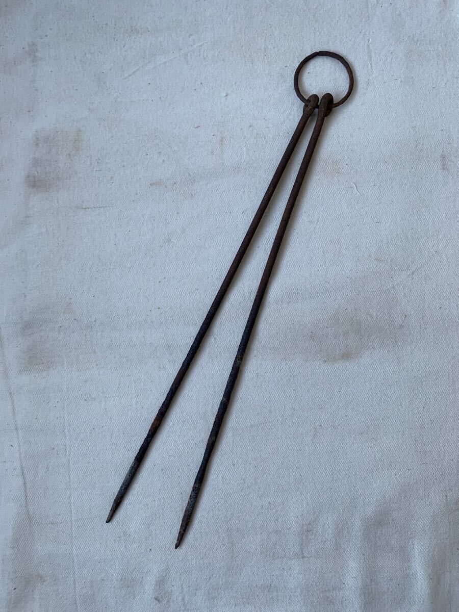 - 旧家蔵出し 経年の雰囲気が素敵な古い鉄箸 アイアン火鉢囲炉裏古民家暖炉レトロ古道具古物骨董アンティークインテリアディスプレイシャビー