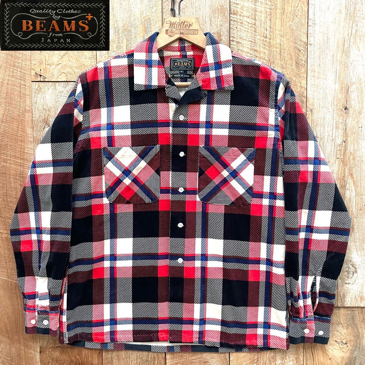 - 【新品未使用】BEAMS PLUS ビームスプラス チェック柄 オープンカラー コーデュロイ シャツ S BEAMS PLUS