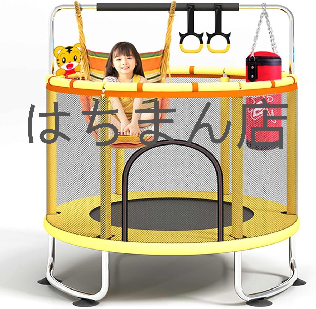 - トランポリン 室内 手摺付き 子供 大人 静音 手すり3段階調節 全鋼構造 耐荷重200kg 高弾力 円形 バランス感覚 有酸素運動 黄1.4M