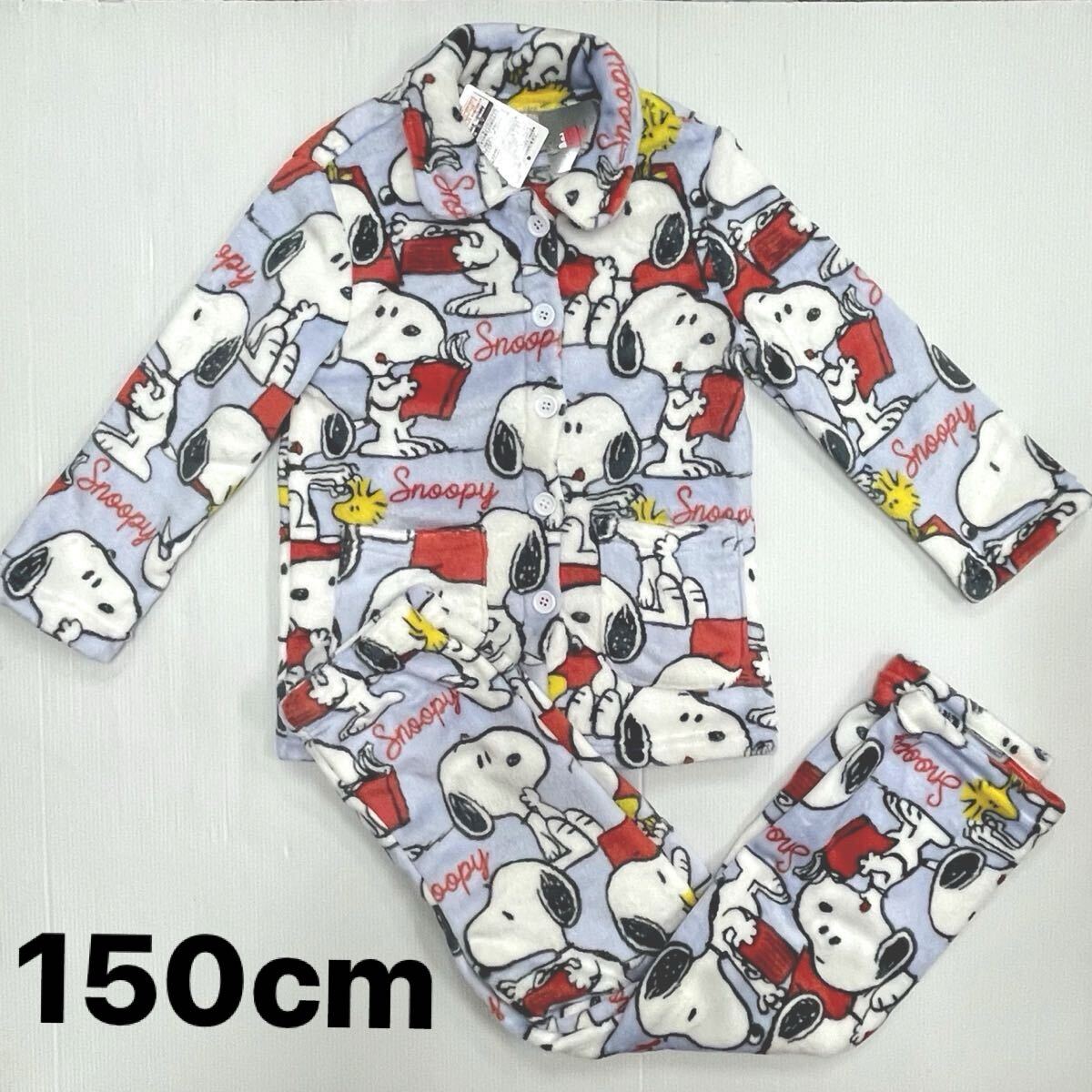 - 新品63437 スヌーピー150cm ライトブルー ジュニアフリース前開き長袖フランネルパジャマ 前ボタン ルームウェアあったか素材男女兼用