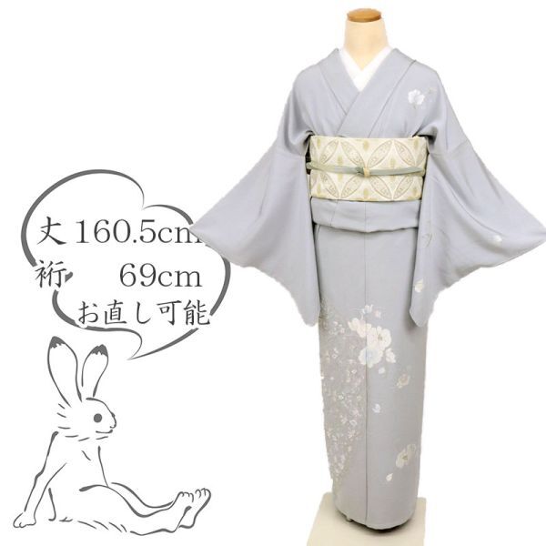 - 【付下げ】 刺繍 『山口美術織物』 蘭に花唐草 グレー 袷正絹着物 SH10-26