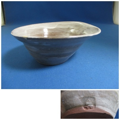 - ★器 不思議な形 径13㎝ 高さ5.5㎝くらい ※縁に修復した跡あり tm2412-3-11★