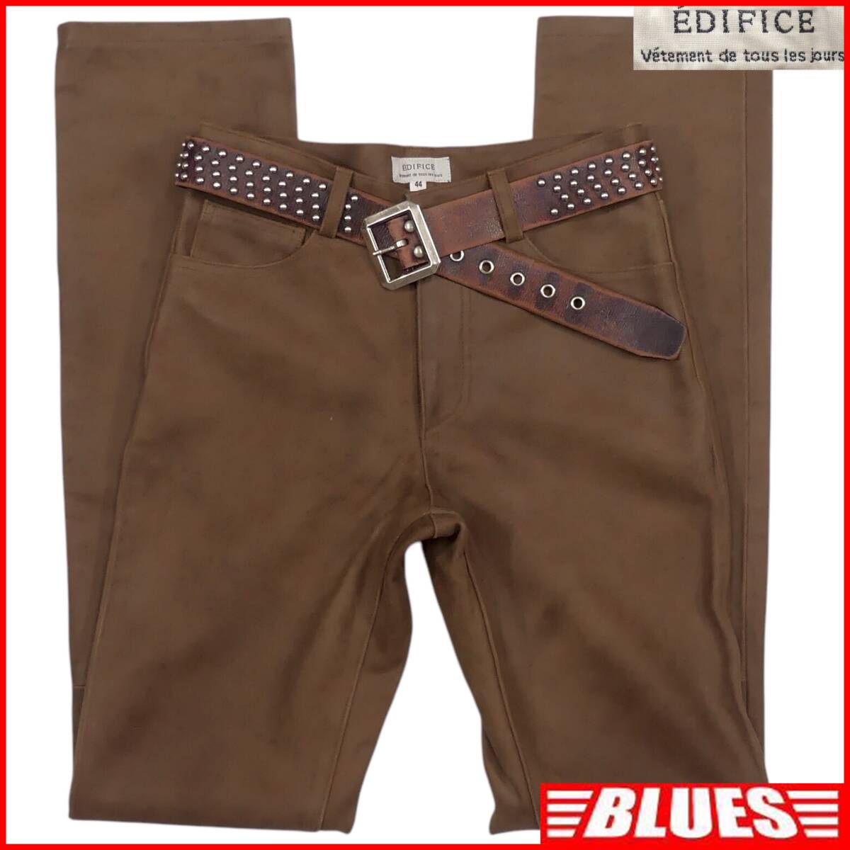 > 即決★EDIFICE★レザーパンツ エディフィス メンズ 茶 44 本革 スエード ライダースパンツ 本皮 パンクロック ツーリング