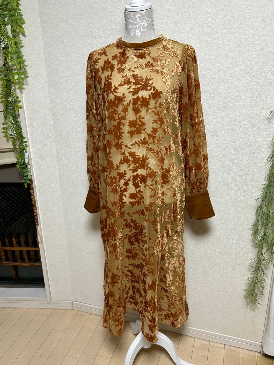 - 【 kastane★カスタネ】シースルーマキシワンピース・ベロアフロッキー柄・重ね着用・Fサイズ