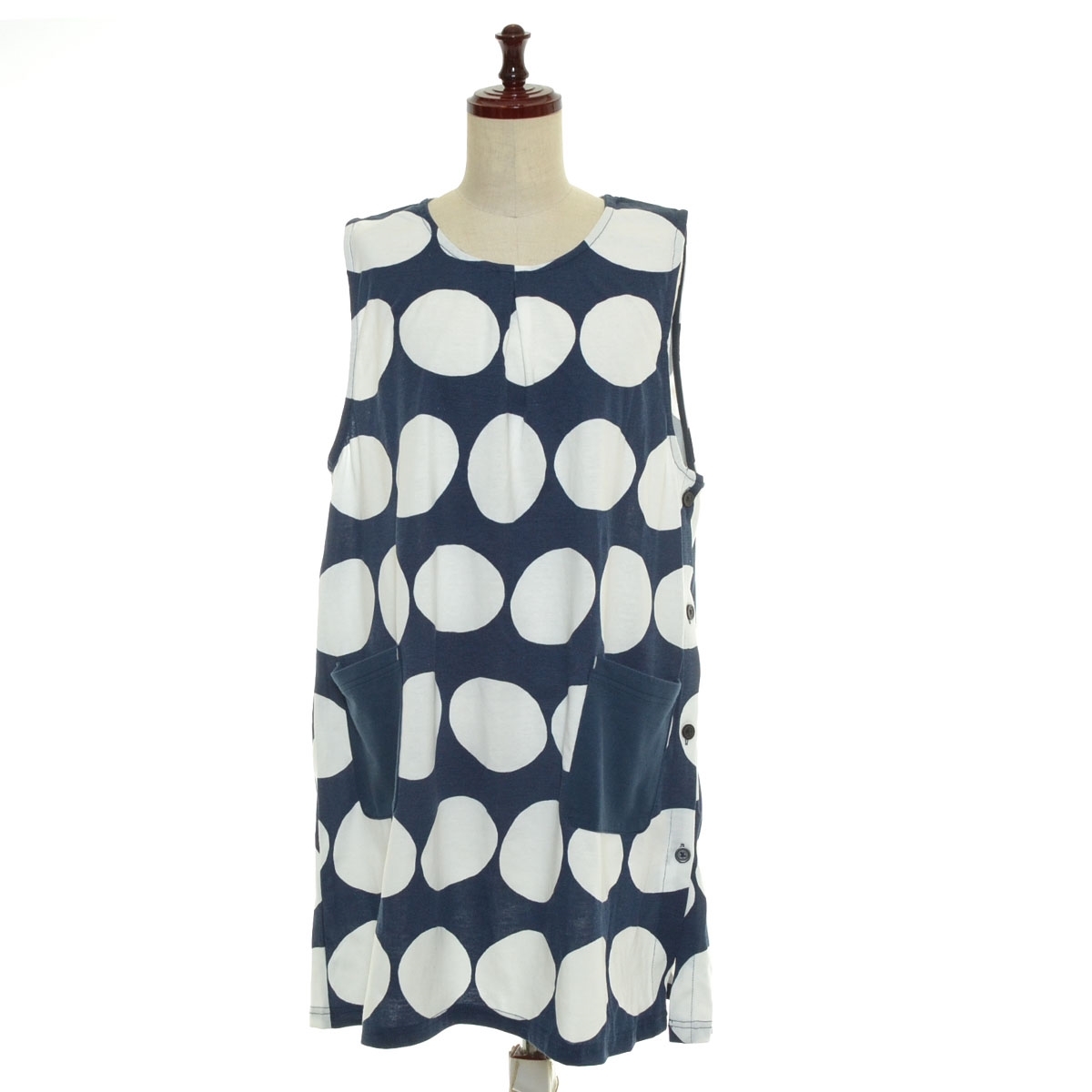 - □528992 未使用品 koti koit ノンノ ○ワンピース 水玉ノースリーブOP サイズM-L レディース ネイビー ホワイト ドット
