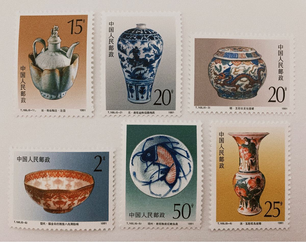 - 中国切手 景徳鎮の陶磁器 T166 6種完 未使用