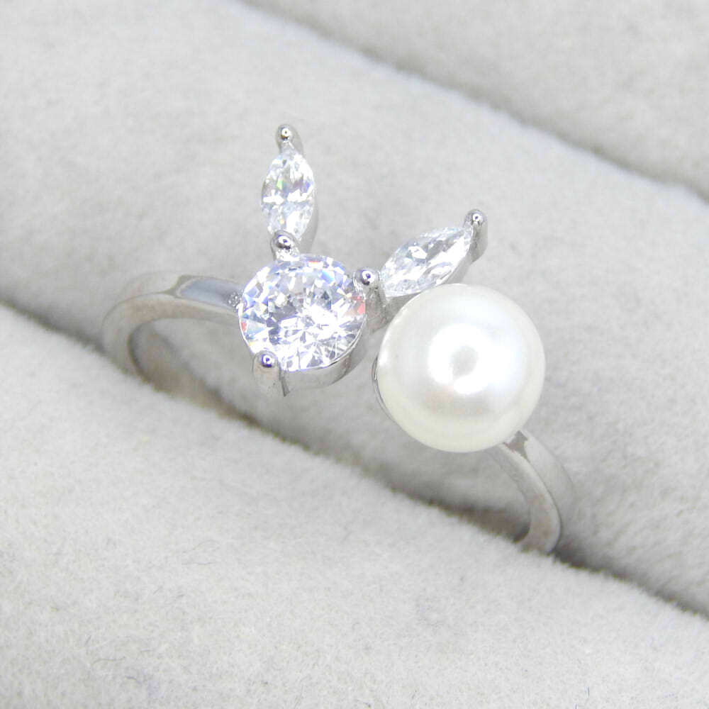 - 再入荷★新品★送料無料 ウサギ 一粒淡水真珠 CZダイヤモンドリング プラチナ仕上 シルバー925 限定 レディースアクセサリー ジルコニア