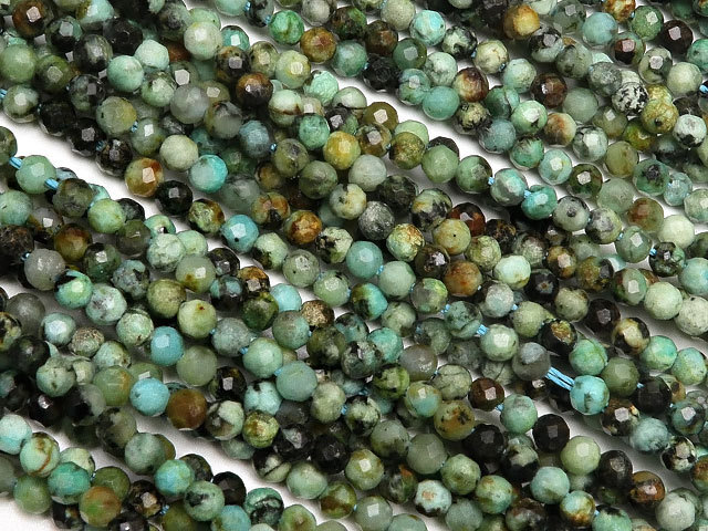 - アフリカンターコイズ 面カット 丸玉 2mm[プレミアムカット]【1連販売】 / 7-7 TQ2MC