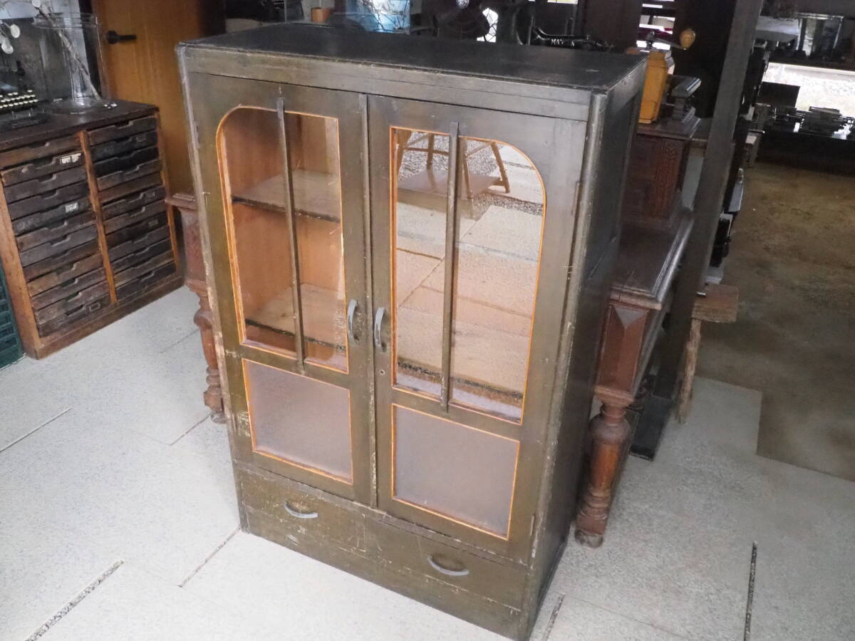 - 【無垢材の本棚】ガラス棚引き戸引出し収納ケースアンティーク骨董インテリア箪笥コレクション棚古道具インダストリアルおもちゃ箱