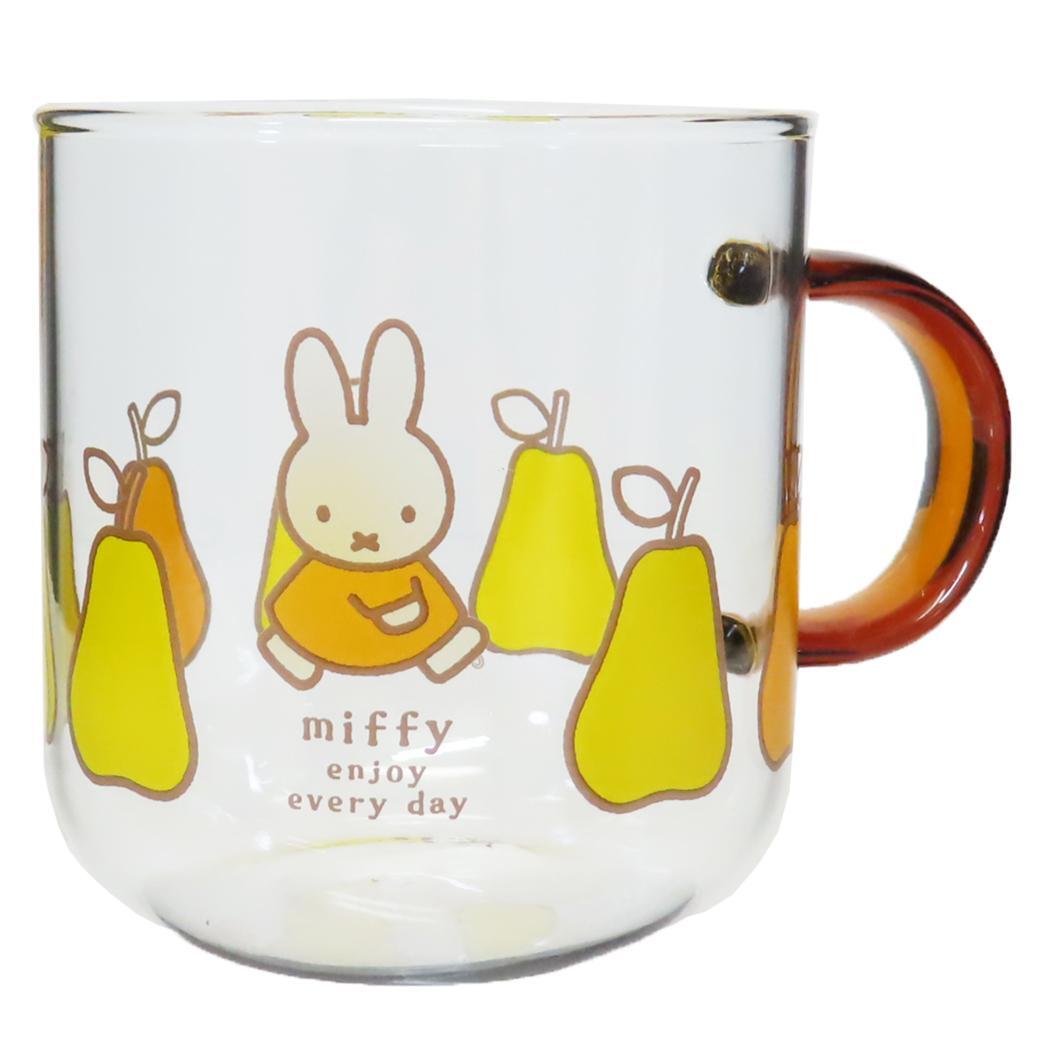 - ミッフィー 絵本キャラクター マグカップ カラーハンドル 耐熱ガラスマグ ブラウン 洋なし ディックブルーナ