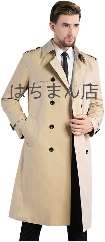 - トレンチコート メンズ 長袖 アウター 秋春 スプリングコート 羽織り 通勤 ビジネス ダブルボタン ロングコート 膝丈 コート S-4XL