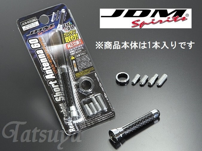 - JDM リアルカーボンショートアンテナ 60mm ブラックカーボン クロームトップ/クロームボトム ヘリカル方式コイル内蔵 JCB-60CBC