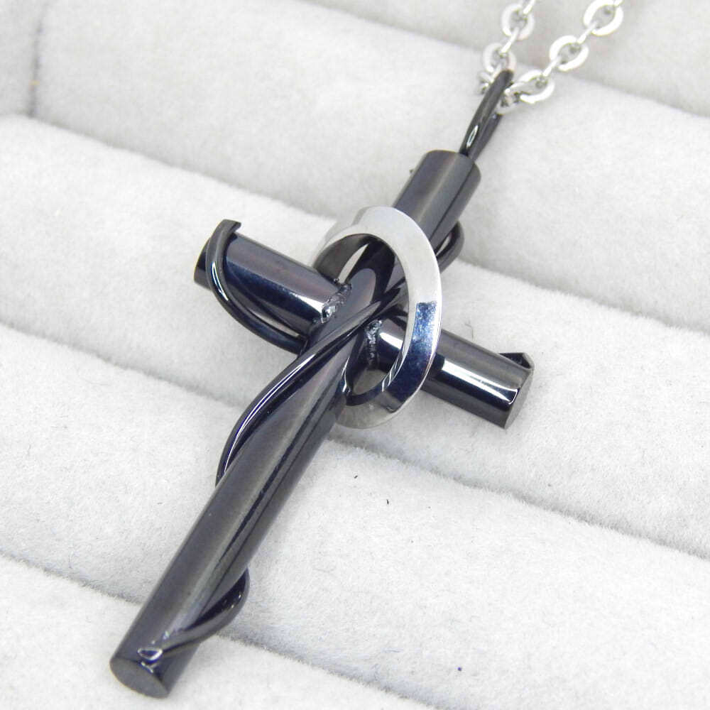 - 新品★送料無料 クロス リング サージカルステンレス ネックレス メンズアクセサリー ブラック 限定販売 希少品 厳選 プレゼント