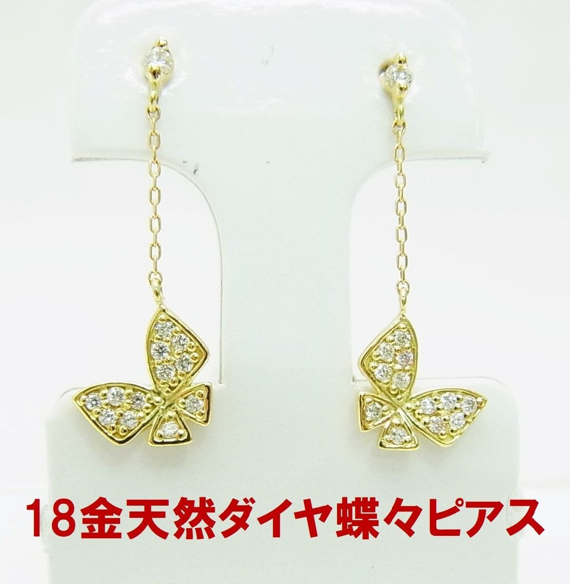 - 蝶々が飛んでいるような上質天然ダイヤモンド バタフライ 18金製 ぶら下がりピアス 動画あり 卸価格 送料込み