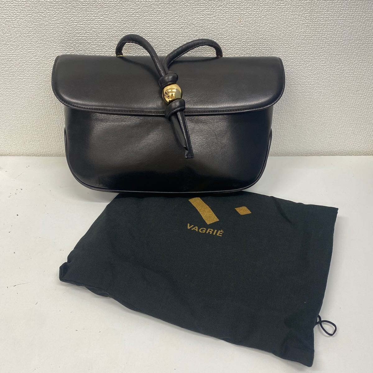 - refle● 未使用保管品 VAGRIE クラッチバッグ ハンドバッグ ブラック ゴールド金具 レトロ ビンテージデザイン 現状品