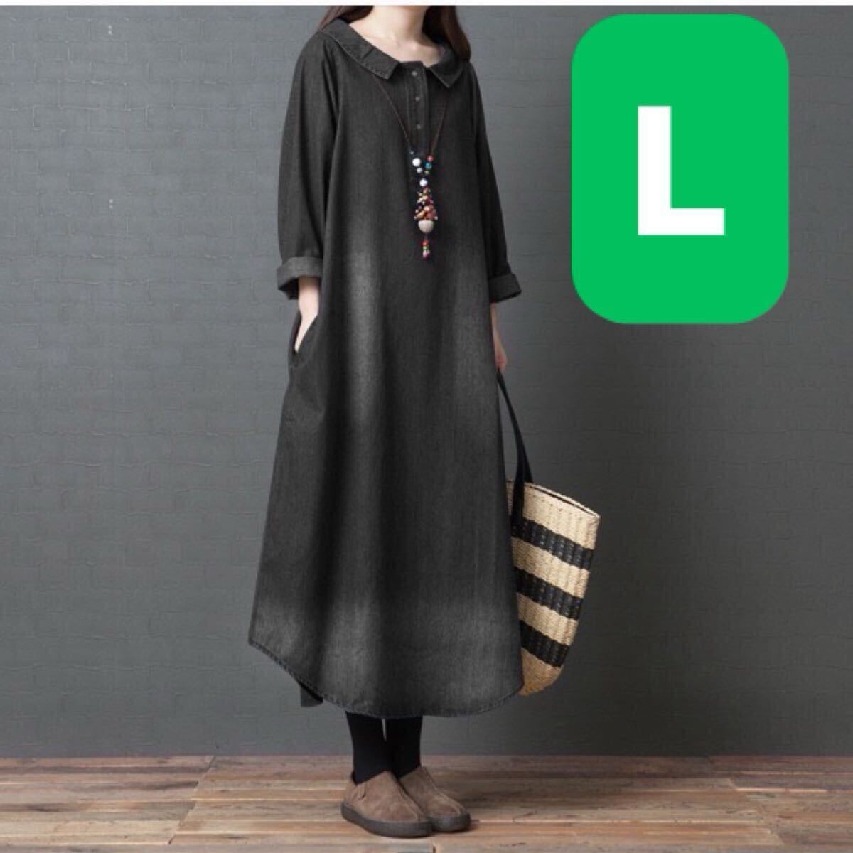 - ワンピース デニム ロングワンピース バルーンワンピ トレンド オルチャン セレブ ストリート 渋谷 原宿系 黒 ブラック L