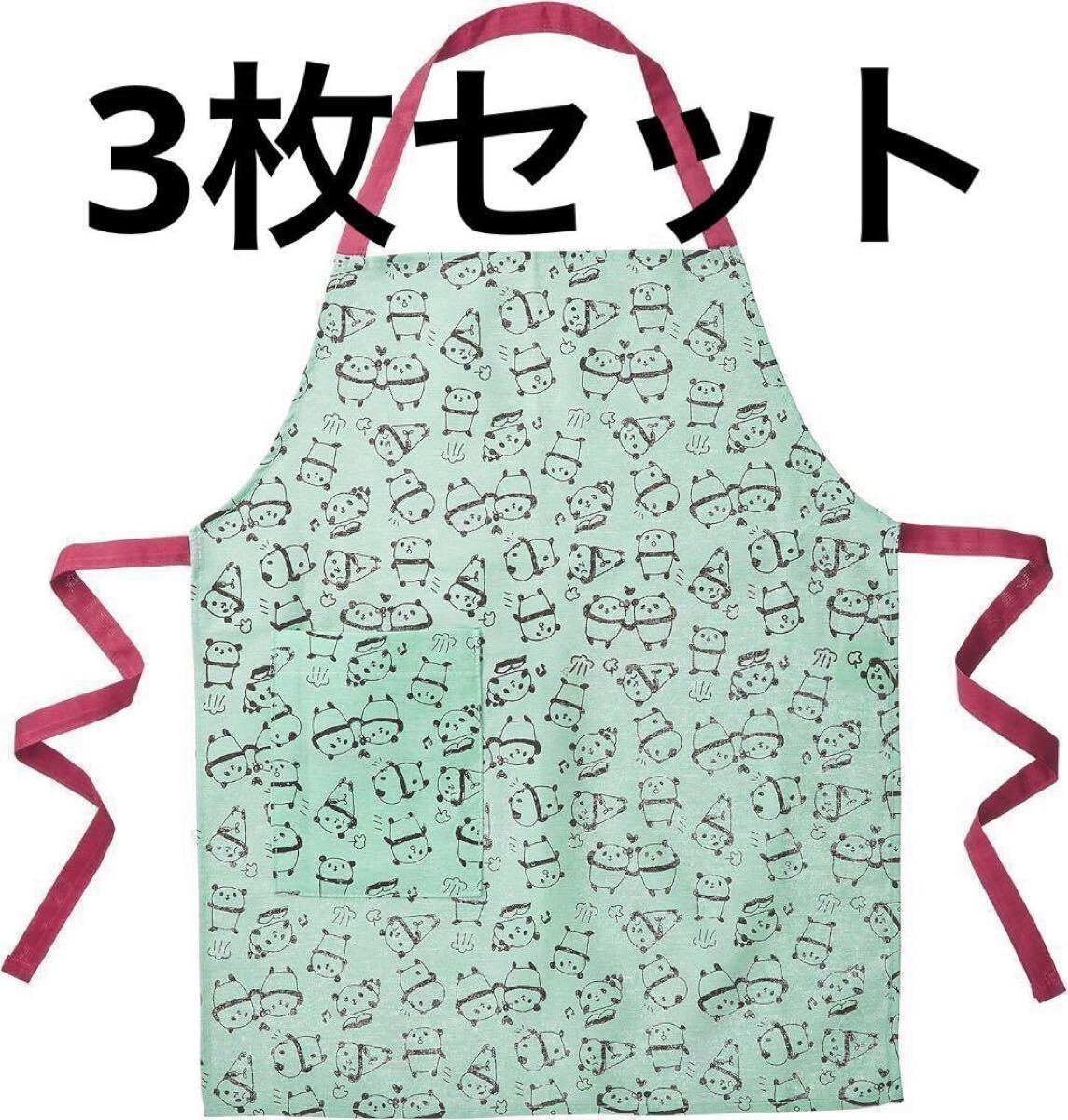 - 新品 エプロン 3枚セット パンダ柄 子供用 キッズ ゆるパンダ グリーン