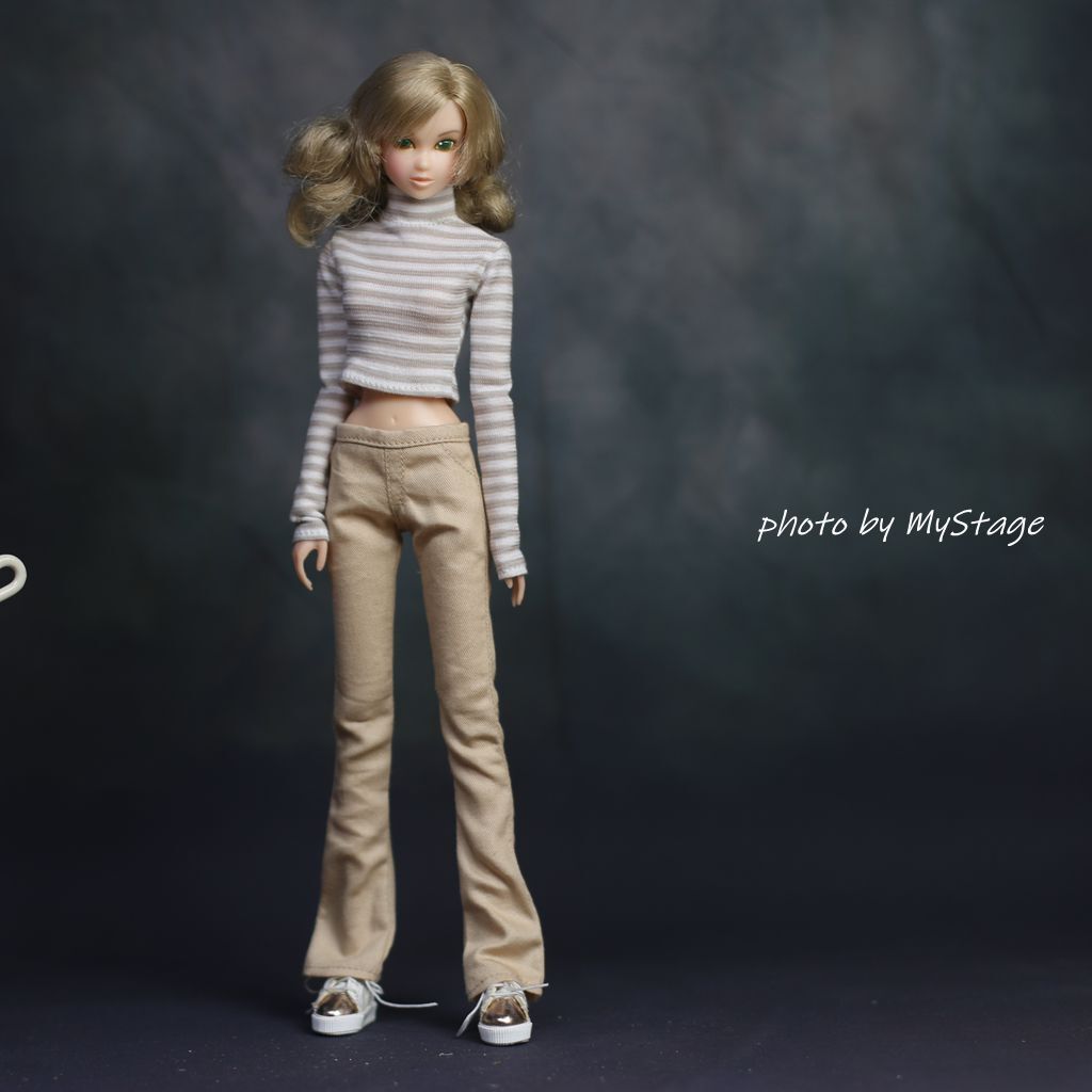 - 人形服msdr-24-391ベージュボーダーハイネックTシャツとラッパズボン(momoko用)