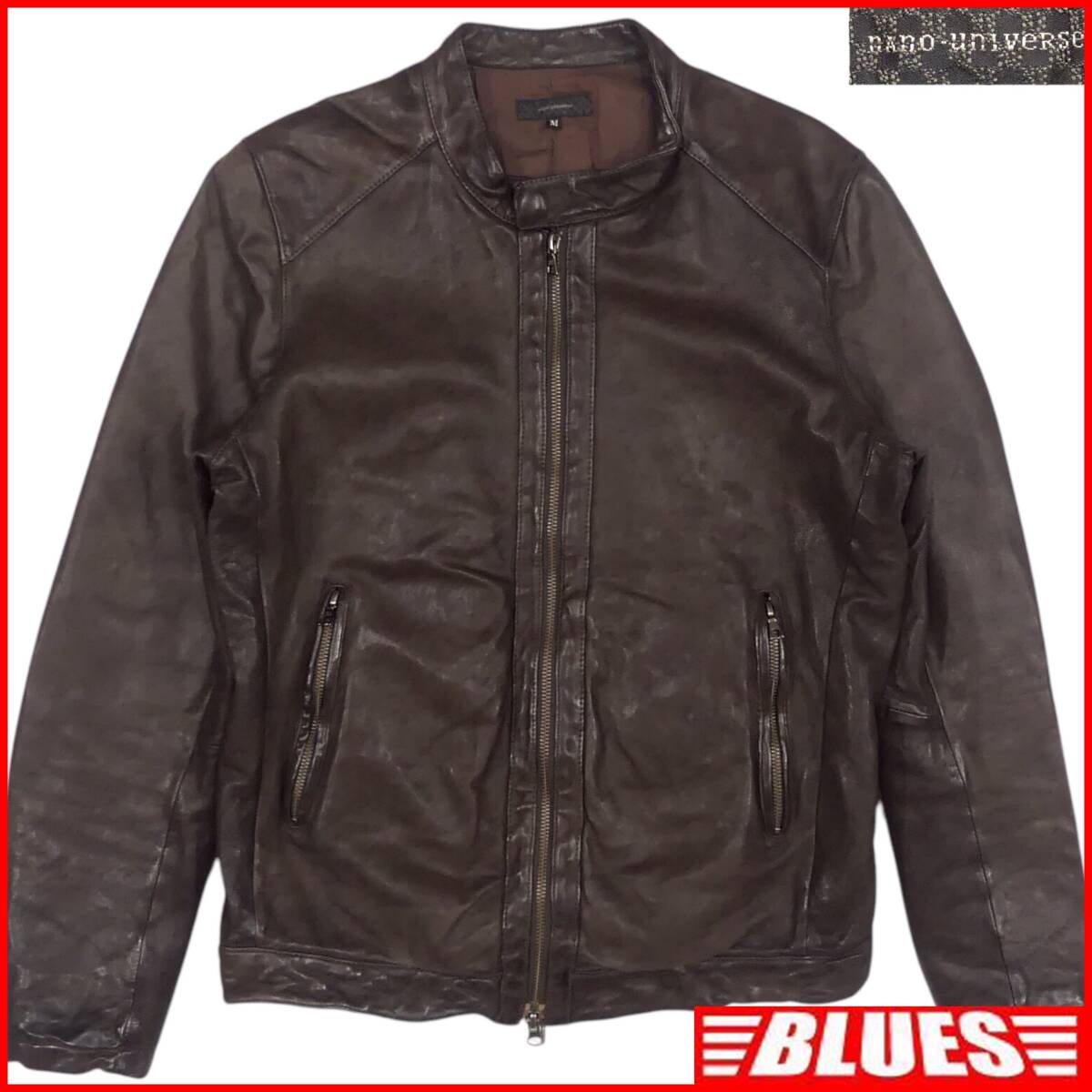 - 即決★nano universe★メンズ M レザーライダースジャケット ナノユニバース 茶 本革 シングル 本皮 羊革 ライディング ツーリング
