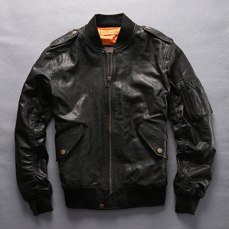 - レザージャケット メンズ 刺繍 フライトジャケット 高級 柔らかい羊革 本革 上品 革ジャン 春秋 M~5XL 黒
