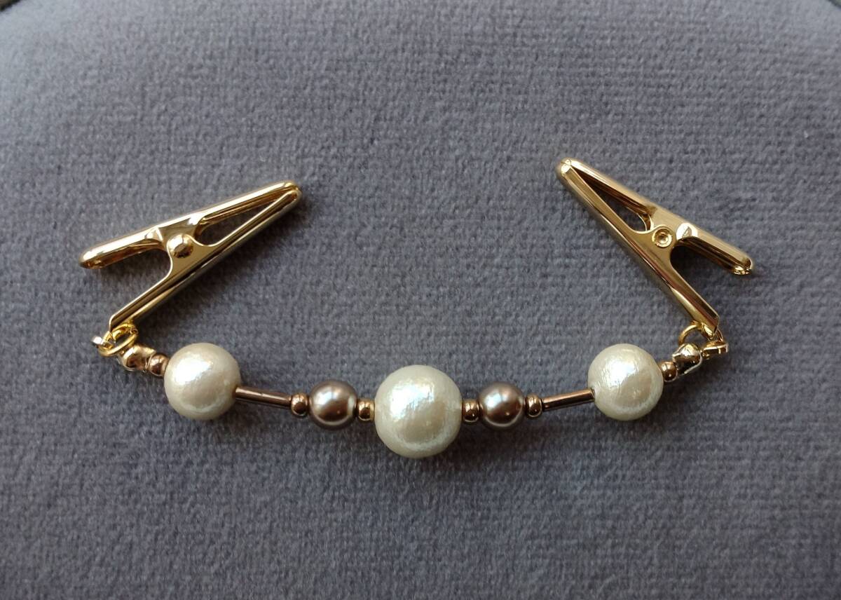 - クリームカラーのコットンパールのストールクリップ ショール留め カーディガンクリップ