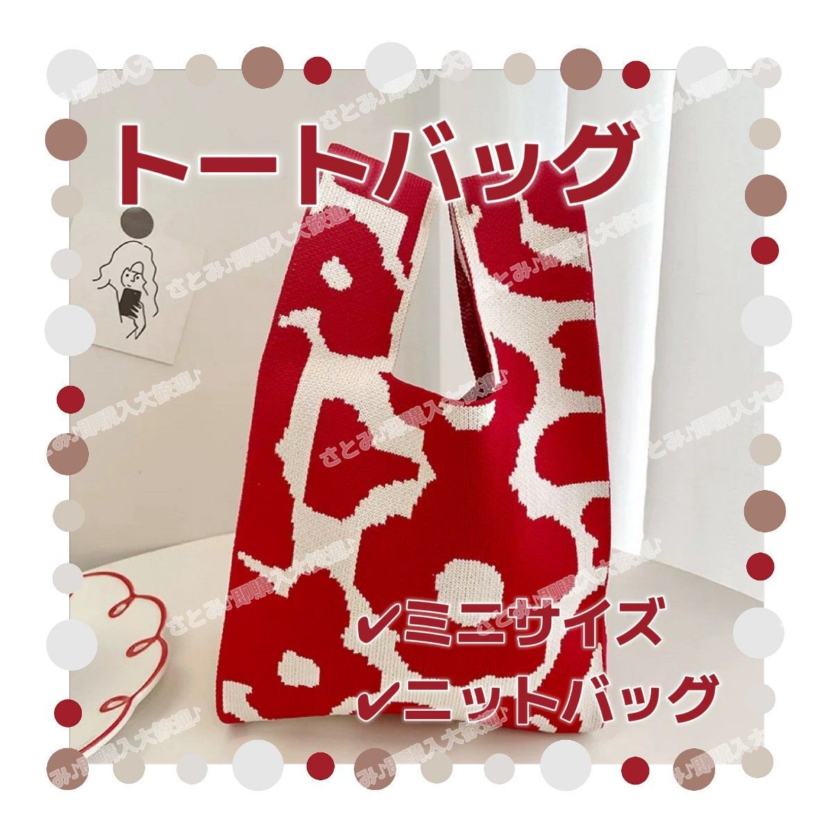 - トートバッグ ミニ ニット ハンドバッグ サブバッグ フラワー レッド