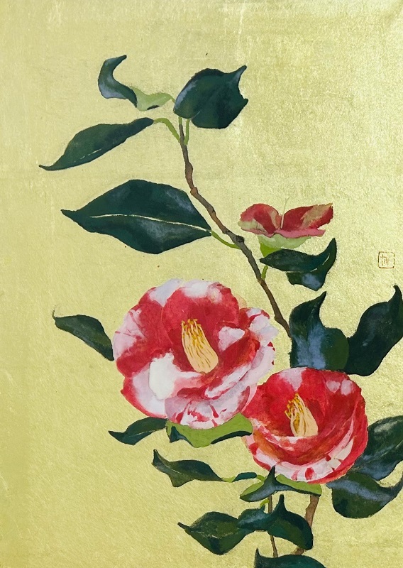 - 【 真作保証・送料無料 】 北村さゆり 「庭の椿」 日本画 4F