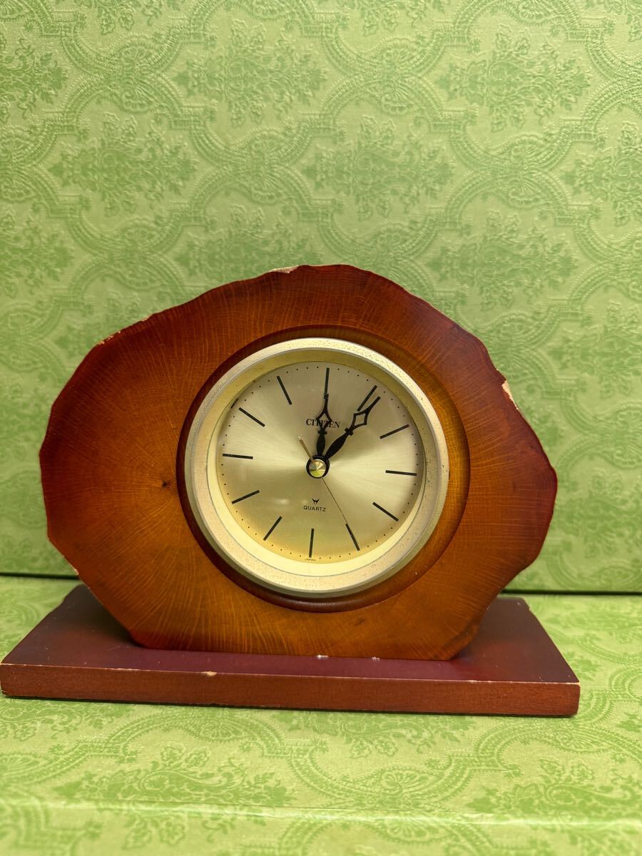 - CITIZEN シチズン置時計木製 回転 年輪 かえでクォーツ時計 楓木置