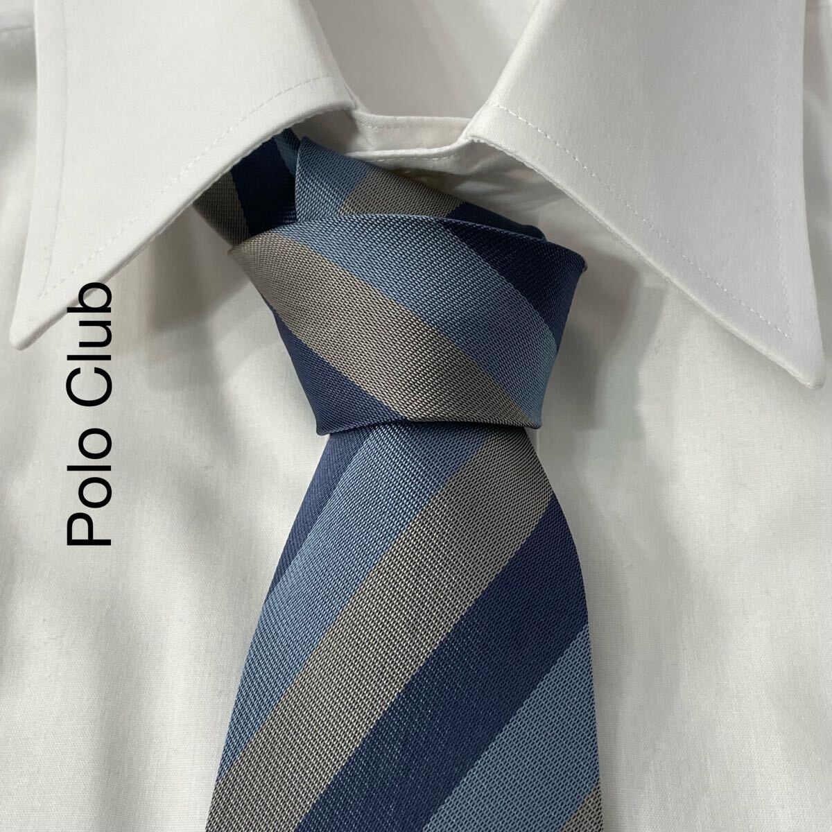 - 希少 Polo Club ポロクラブ ストライプ ヴィンテージ ネクタイ 国産品 ライトブルー ネイビー グレー TG723