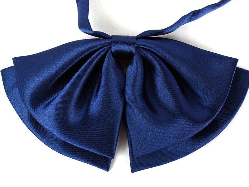 - レディースファッション 学生風 光沢感 無地 蝶リボン 蝶タイ#ネイビー