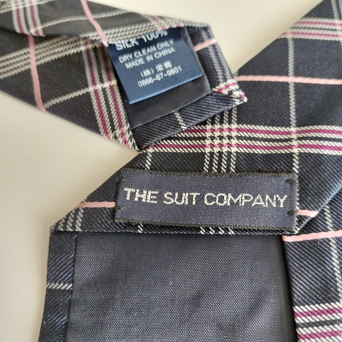 - THE SUIT COMPANY(ザスーツカンパニー)紺ピンク線チェックネクタイ