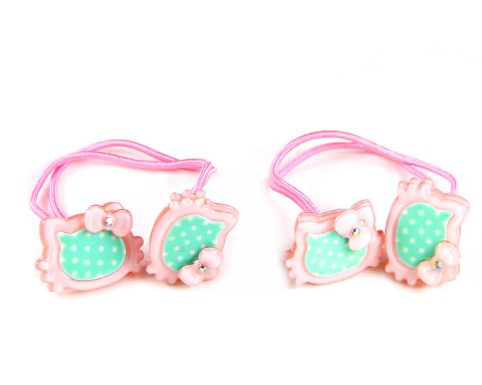 - ヘアゴム 子供 キッズ 限定 100円セール 猫 ネコ 水玉 2本セット ピンク ミントグリーン ポイント消費 mimosa