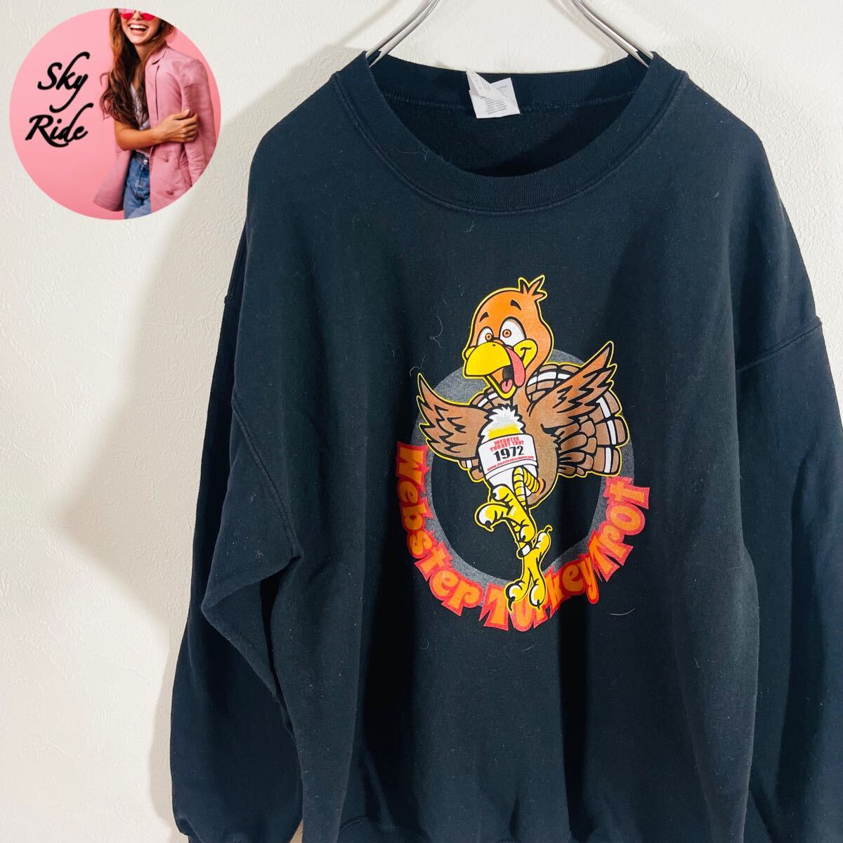 > GILDAN ギルダン メンズ ヴィンテージ ウェブスター 七面鳥 ビッグプリント プルオーバースウェット トレーナー ブラック L 古着 #TB1054
