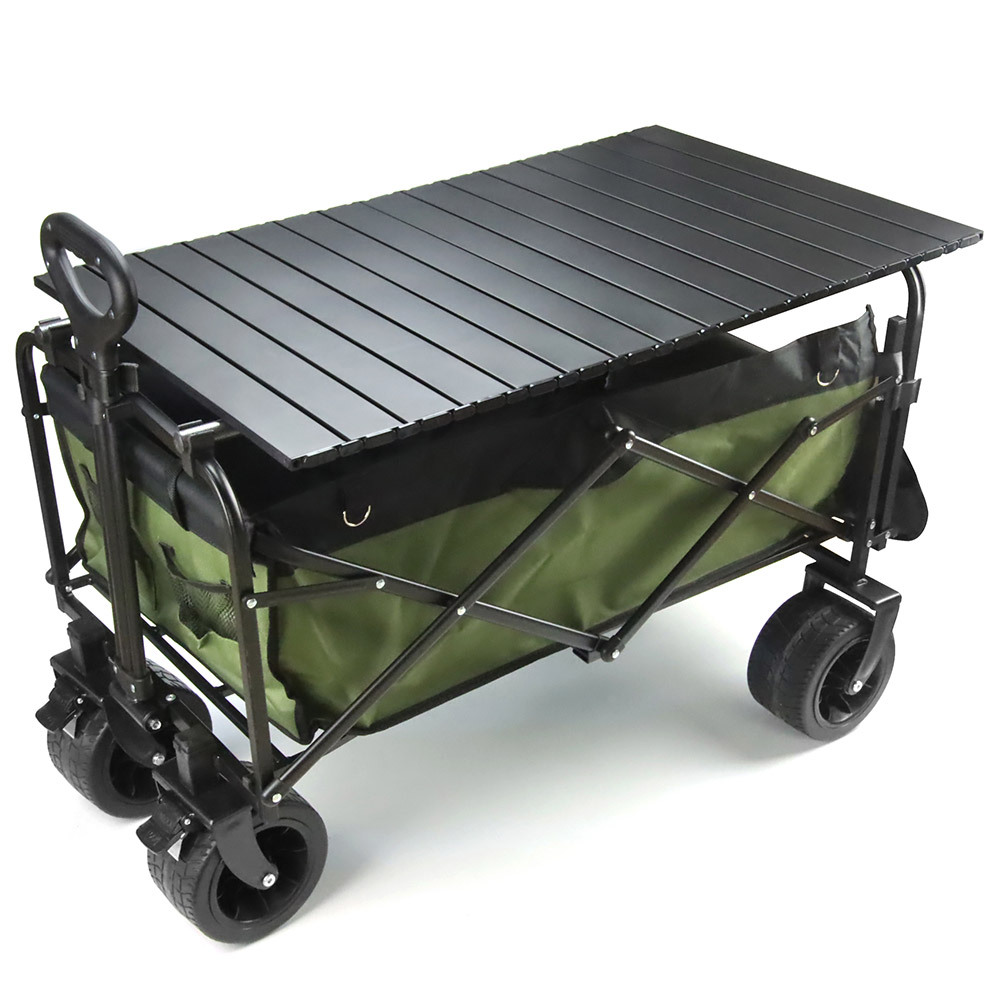 - テーブル付き キャリーワゴン2WAY 大容量 後部展開可 キャリーワゴン ブレーキ機能付き 長物対応 折り畳み式 ワンタッチ収束 アウトドア等@