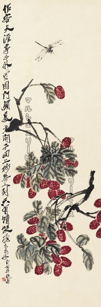- 斉白石 昆虫花鳥 花鳥 ライチとトンボ 水墨 彩色図 宣紙画芯 装飾 掛け軸 東洋画