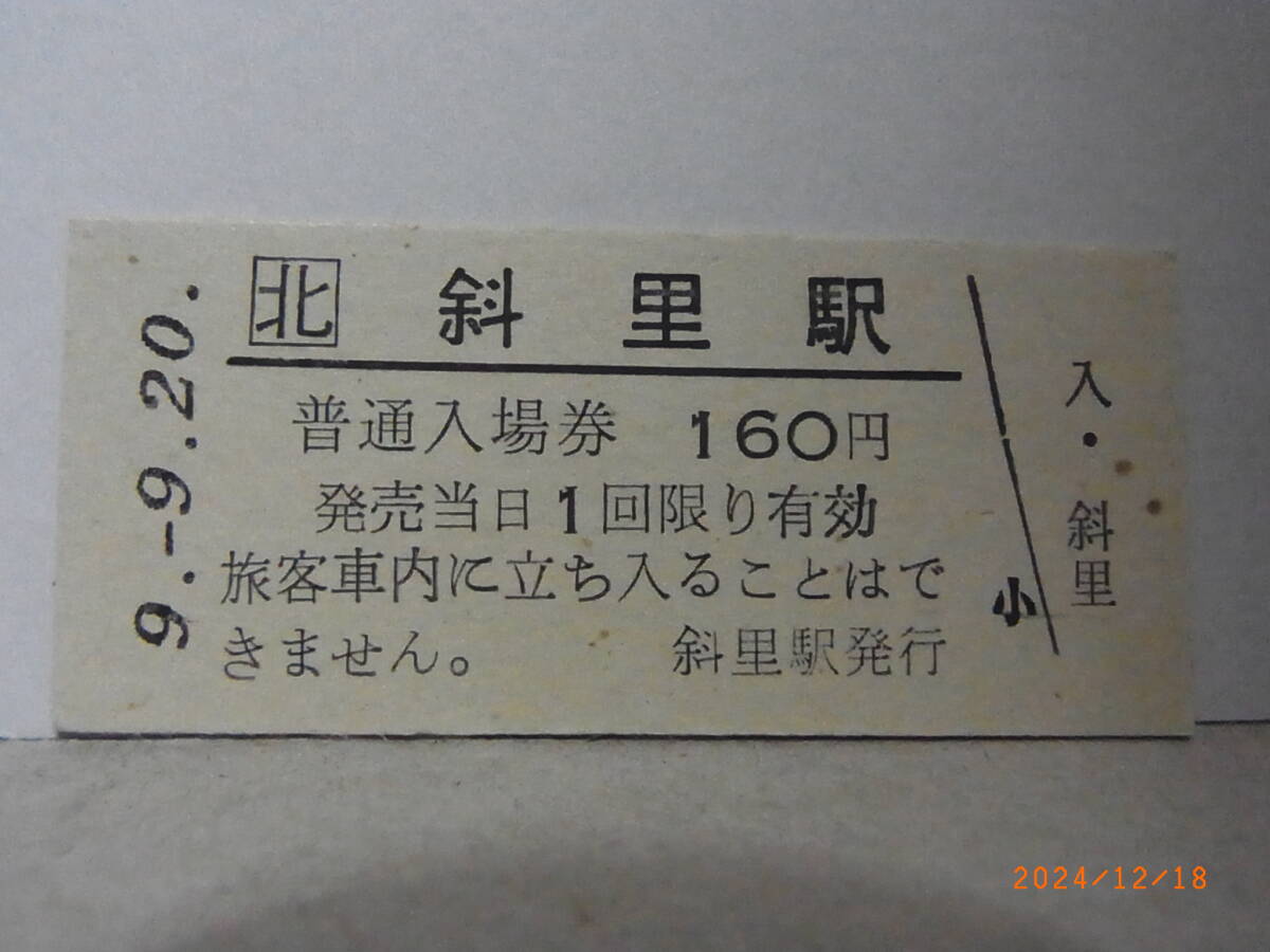 - JR北海道 釧網本線 斜里駅 160円普通入場券 平9.9.20 1818 ★送料無料★