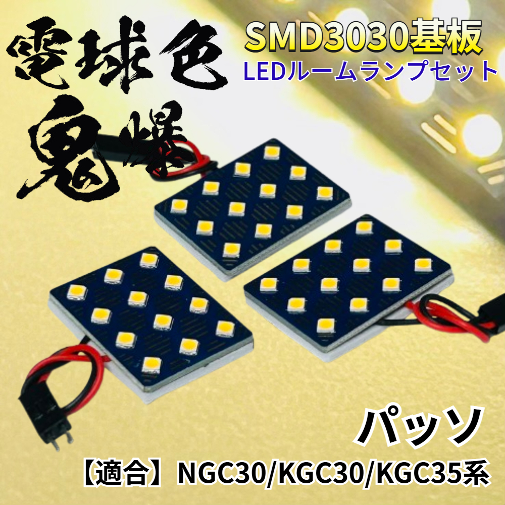 - 【電球色】パッソ NGC30/KGC30/KGC35系 暖色 鬼爆基板 3030SMD LED ルームランプ セット 車内灯 室内灯 パーツ アクセサリ