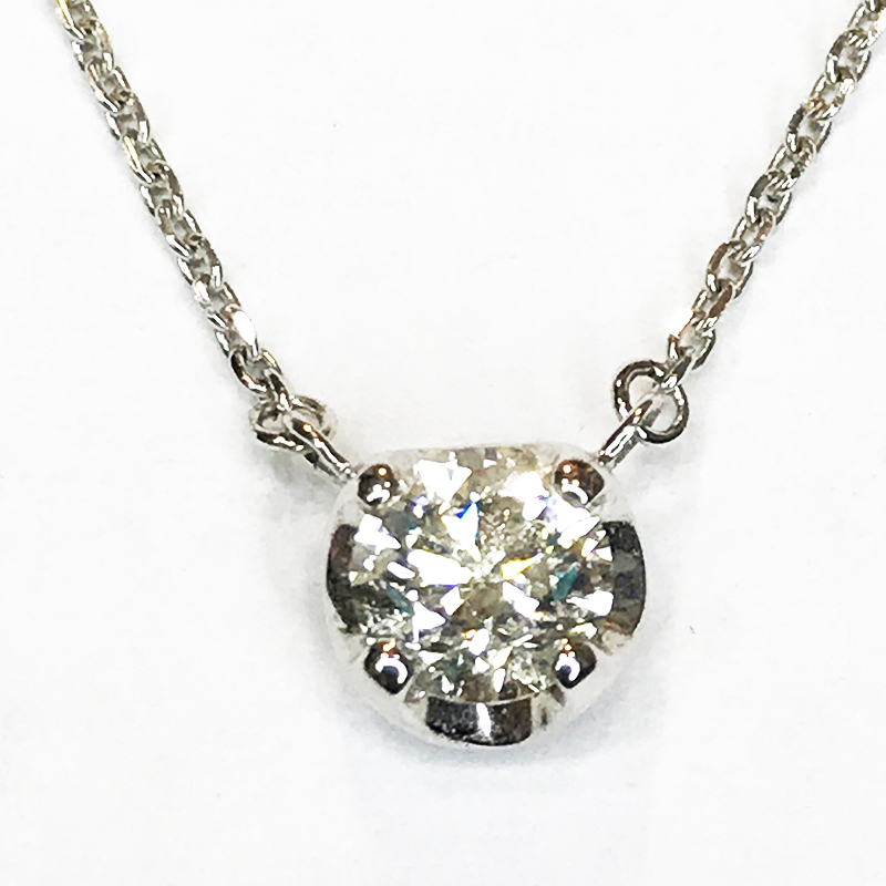 - qoj.1874 4℃ K18WG ホワイトゴールド ダイヤ一粒ネックレス ダイヤ 0.419ct ペンダント N07