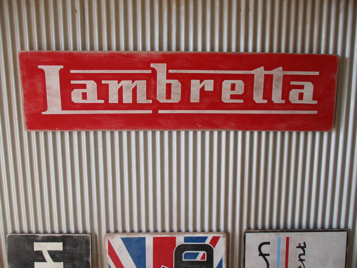 - インテリア木製看板 LAMBRETTA検)アドバタイジング販促ランブレッタガレージカスタムスクーターVESPAベスパITALY60s70s80s