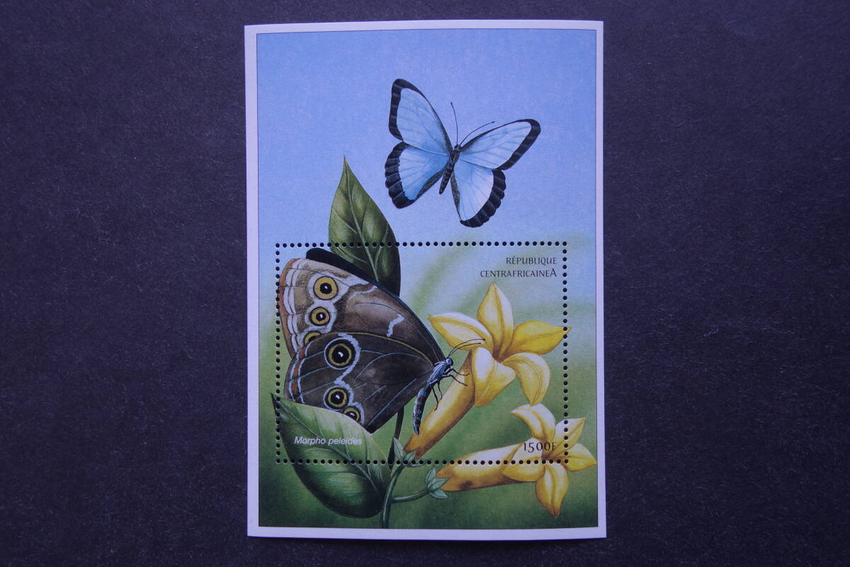 - 外国切手: 中央アフリカ切手 「蝶(チョウ)」(印面:ペレイデスモルフォ)小型シート 未使用