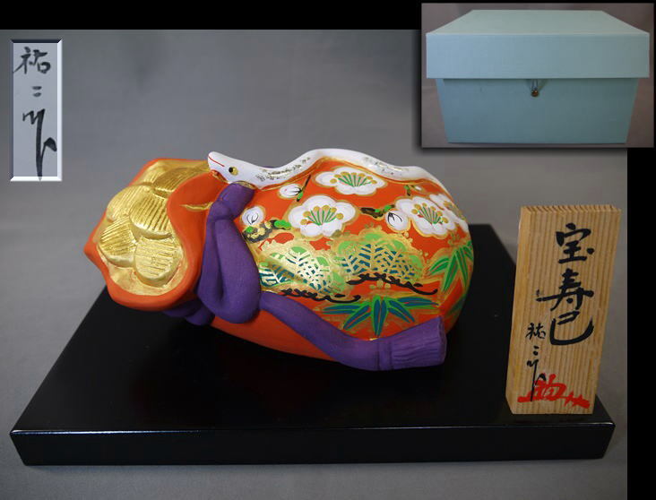 - 【ナ】博多人形師 小副川祐二作「宝寿巳」幸運金運をもたらす縁起良い白蛇 新春飾り
