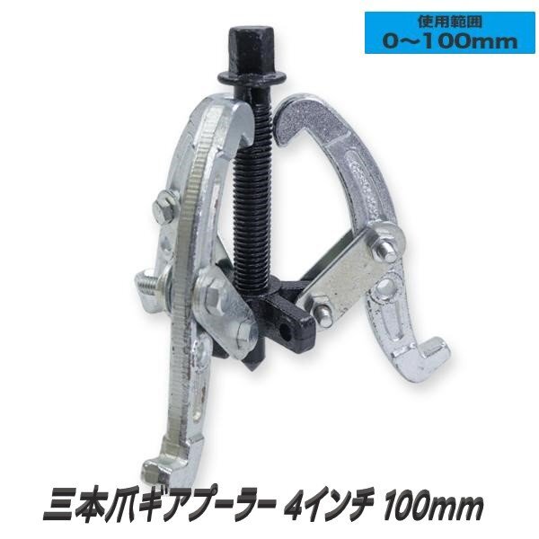 > 【送料無料】三本爪ギアプーラー 4インチ 100mm 外掛け 内掛け兼用 二本爪も可能 自動車 部品 車用品 メンテナンス 整備 修理