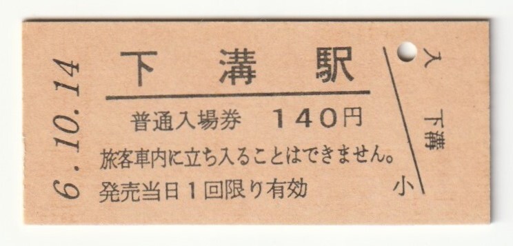 - 平成6年10月14日 相模線 下溝駅 140円硬券普通入場券(日付印刷)