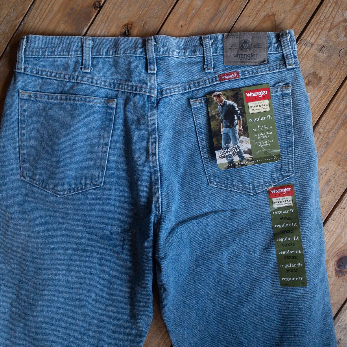 > 新品 Wrangler ラングラー デニムパンツ メンズ 38x32サイズ ジーンズ 大きめ ストレート ブルー レギュラーフィット タグ付き未使用 P1577