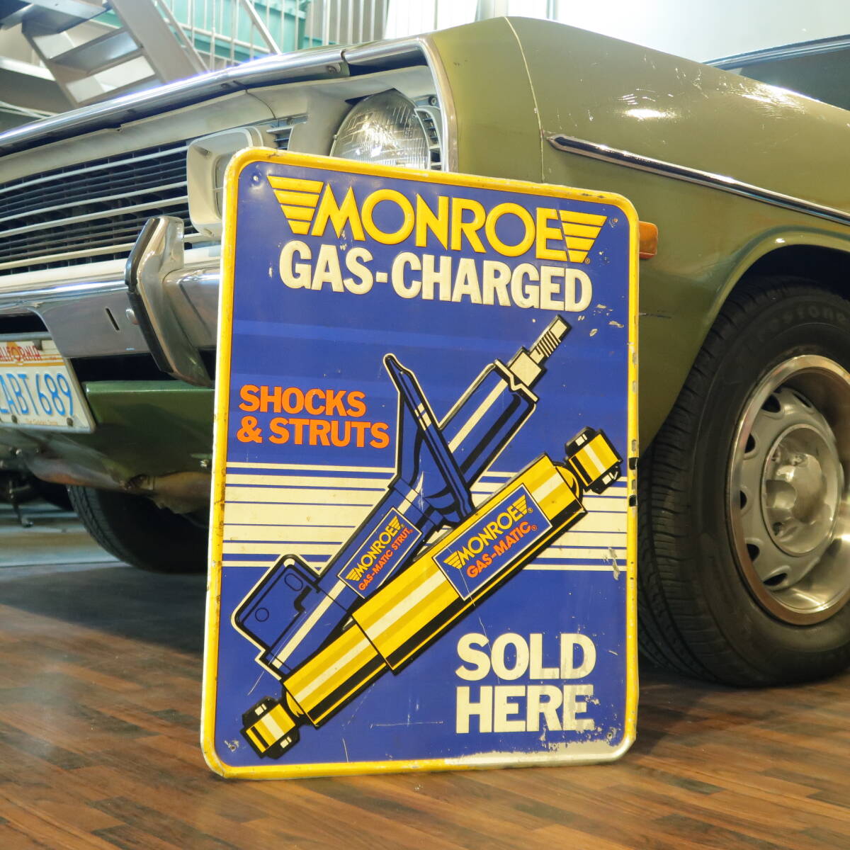 > MONROE GAS CHARGED ビンテージ サイン USA 看板 モンローショック ガレージ 店舗什器 ディスプレイ 雑貨 FIRESTONE