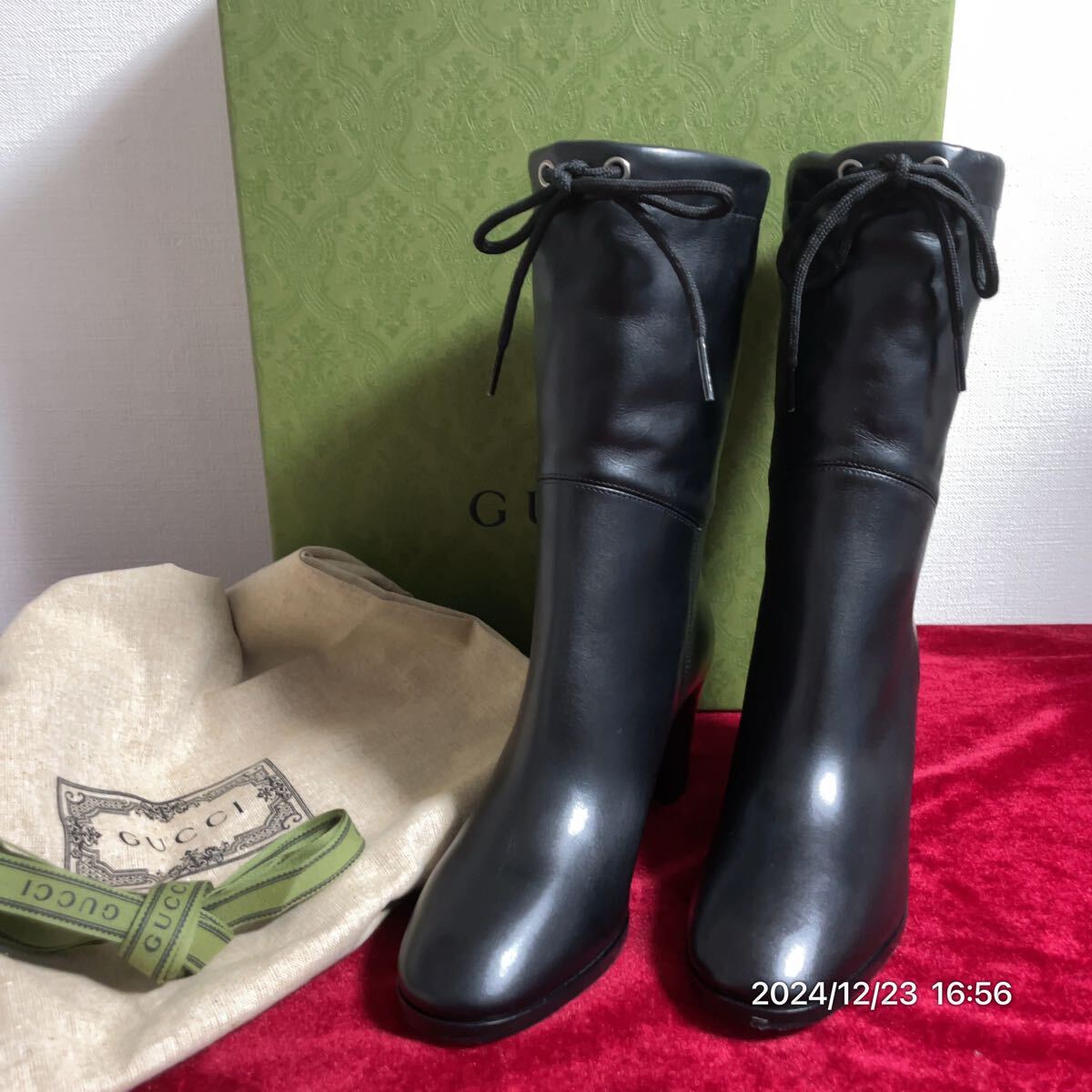 - 極美品 GUCCI グッチ GGロゴ ブラックカラー ファー ショート ブーツ 靴 箱付き