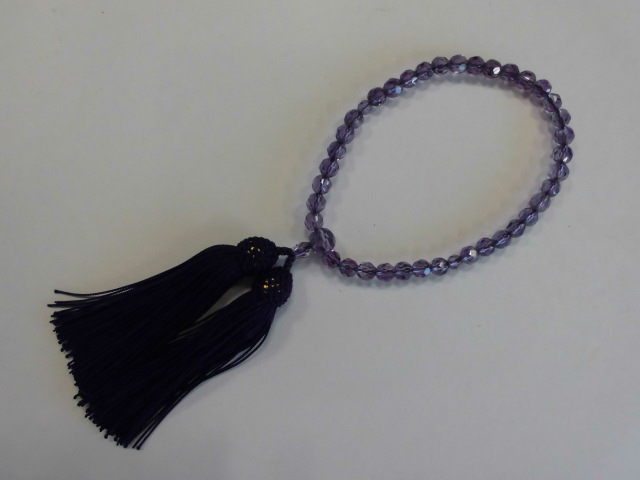 - 新品 アメジスト カット7mm 数珠 正絹房 日本製 天然石念珠 紫水晶