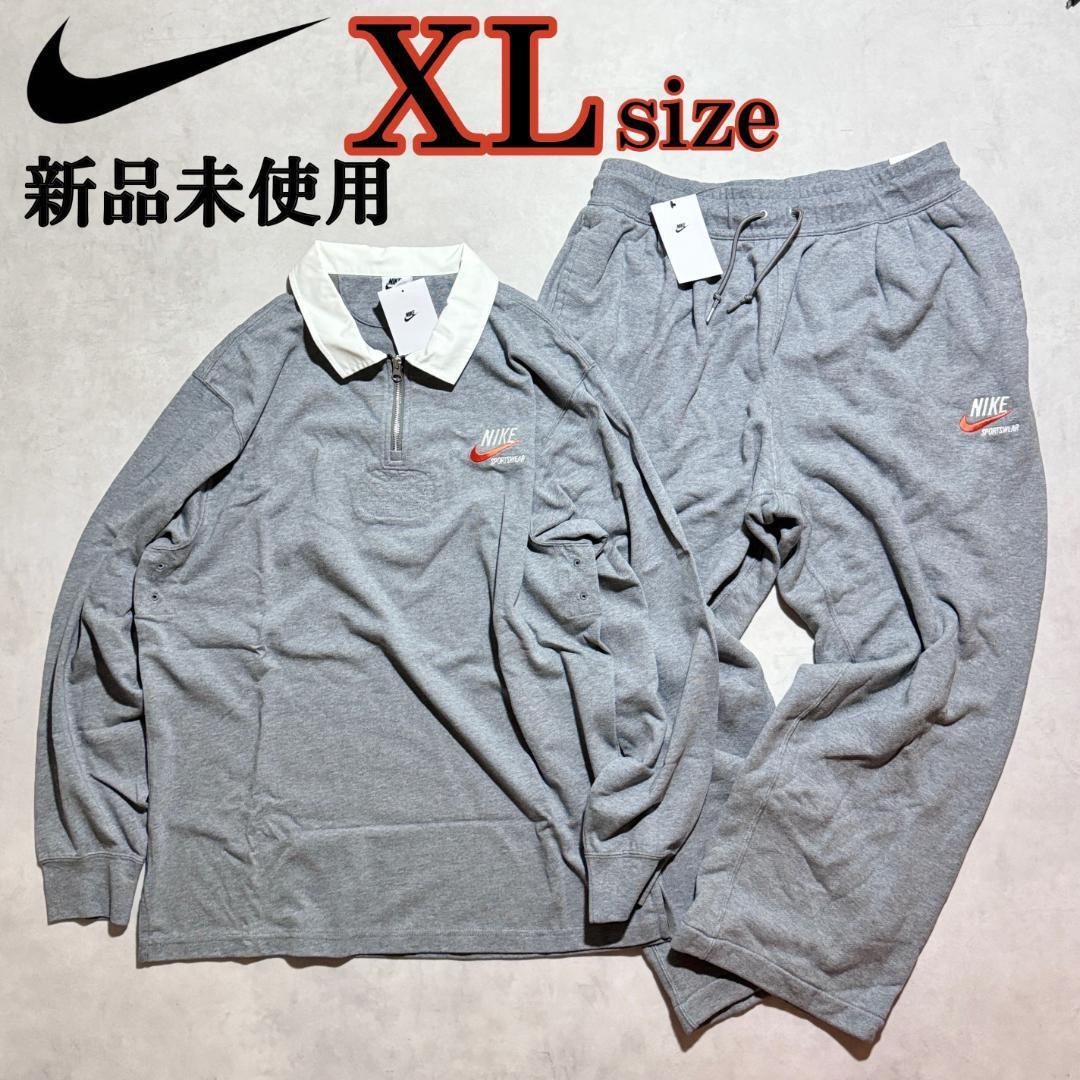 > 新品 XLサイズ ナイキ 上下セットアップ 長袖 スウェット シャツ パンツ NIKE トレンドマーク グレー 緩め 人気 完売品 ルーズフィット