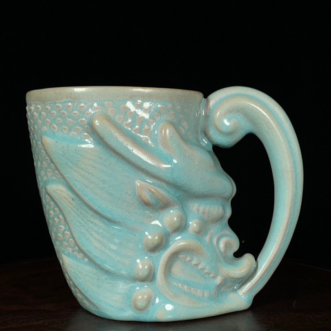 - 【超珍館蔵】宋 古陶瓷品 汝窯 龍頭杯 置物 古賞物 古美術品 稀少珍蔵品